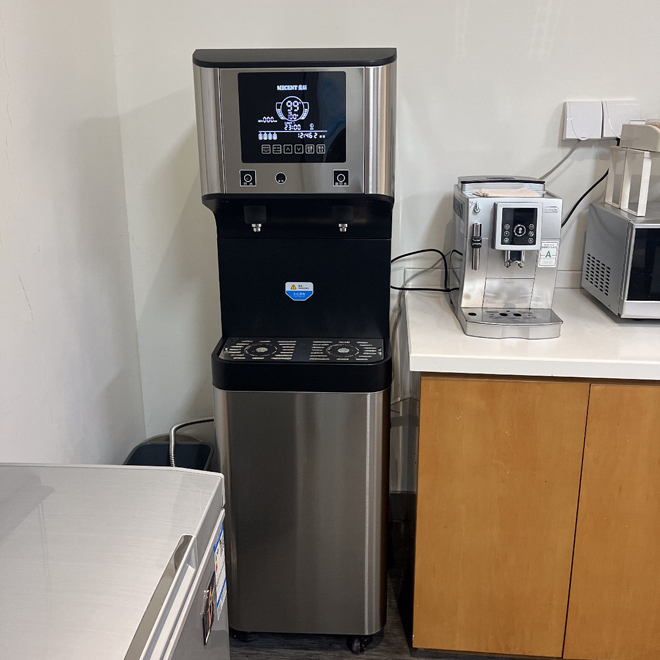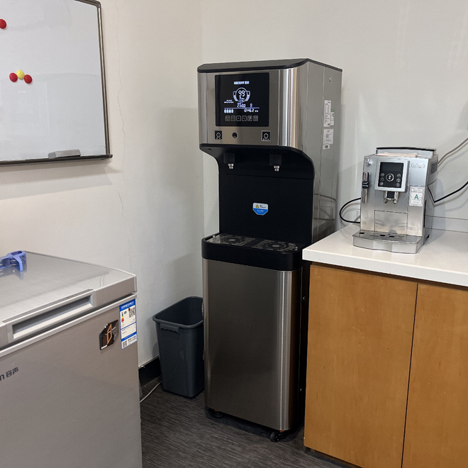上海奉賢區(qū)某公司為解決健康飲水問題,之前都是使用桶裝水,一直存在桶裝水管理麻煩,空間占用大,喝熱水麻煩等,客戶在網(wǎng)上了解到可以租賃直飲水機,于是聯(lián)系到我們,根據(jù)現(xiàn)有人員給出解決方案,租賃直飲水機ME205B實現(xiàn)健康飲水升級。該設備采用RO反滲透技術,過濾精度達0.0001μm,可去除水中余氯、重金屬、細菌病毒等污染物,并通過UV紫外線實時抑菌,確保水質(zhì)安全。